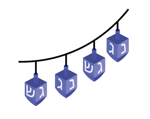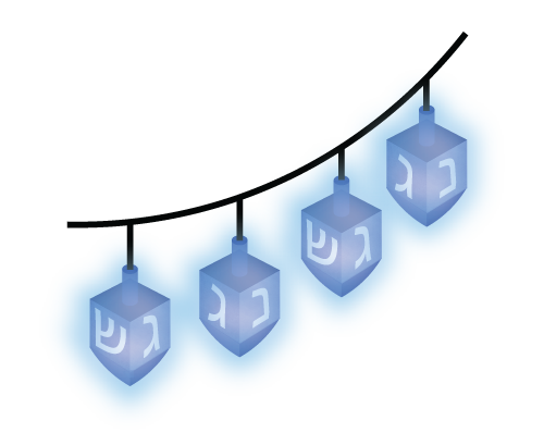 Menorah, Dreidel, Navidad Juice, and Kinara.