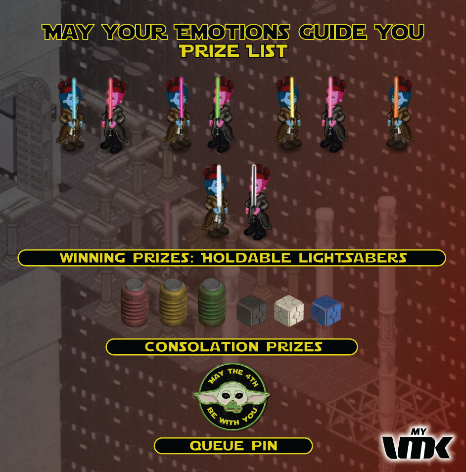 May the 4th, May your Emotions Guide you Event Prizes. The consolation prizes consist of Galaxy’s Edge Barrel Chairs and walkable Imperial Crates.