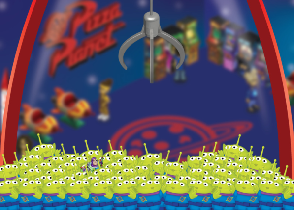 Room background I designed for “The Claw,” room featured in the Pixar Fest Maze. The blurred assets were a combination of original game assets and former designer made assets.