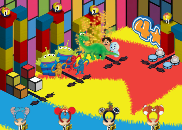 To set the tone for the Pixar Fest Maze 2024, I designed custom backgrounds and assets to maintain a consistent flow of visuals throughout the maze. I was inspired by the bright blocks of colors and the Pixar Ball motif featured in Disneyland California’s Pixar Fest. The backgrounds were also inspired by various Disney Pixar movies and shorts.