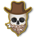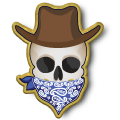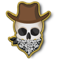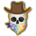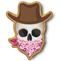 Western Bandana Skull Pins: Red, Orange, Yellow, Green, Blue, Purple, Pink, Rainbow, Black, and White.