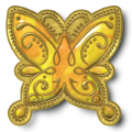 Consolation HOST Prize and Queue Pin: Bag of Money furniture and Western Brooch - Encanto Butterfly pin.